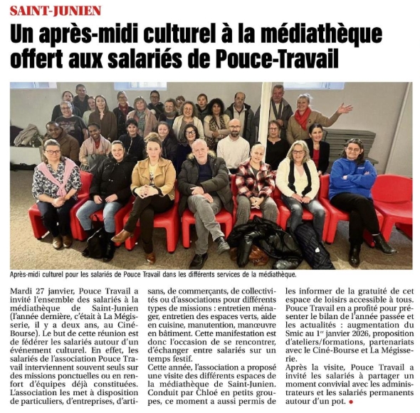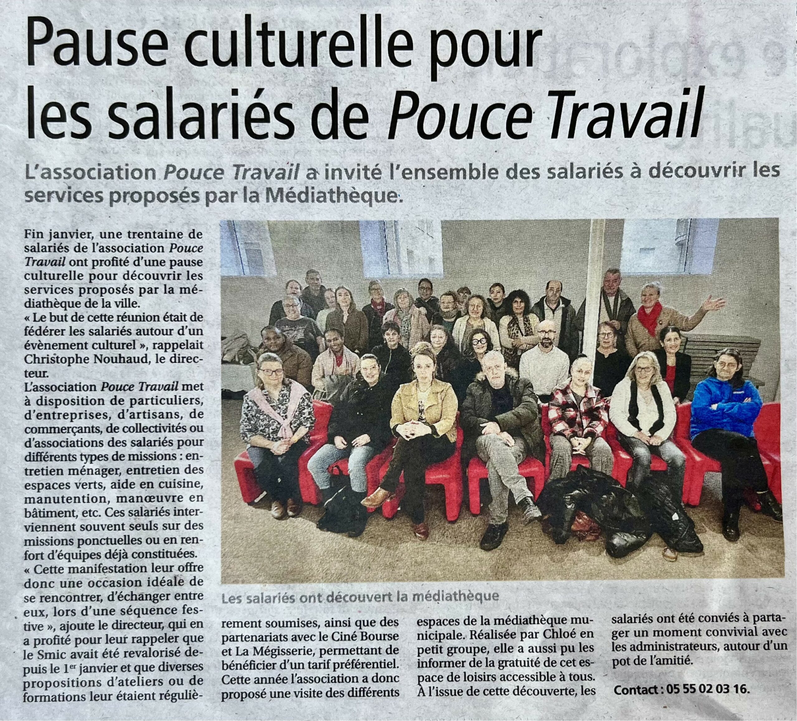 Mardi 27 janvier Pouce Travail a invité l’ensemble des salariés à la Médiathèque de Saint-Junien.
